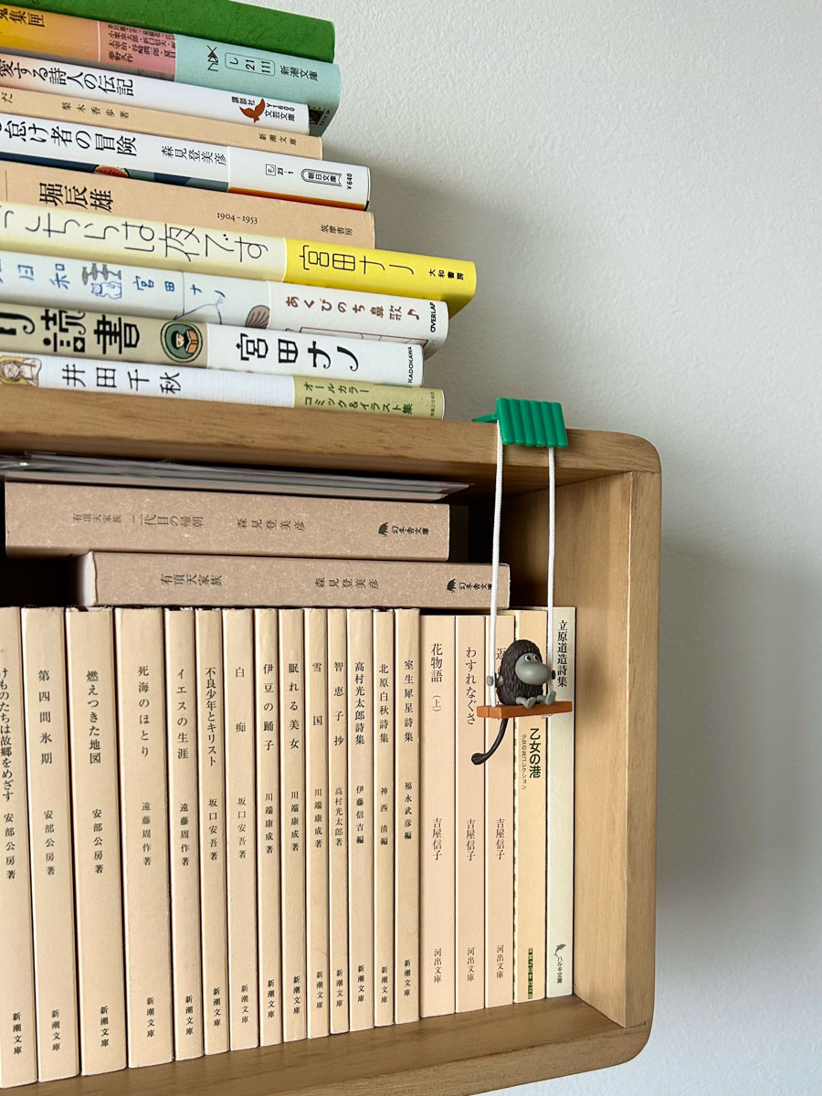 「ガチャガチャで引いたムーミンの『ご先祖さま』というキャラクター。垂れ下がった尻尾が可愛らしくてお気に入り。本は、近代文学や戦前・戦後の作品が特に好きです」(森)