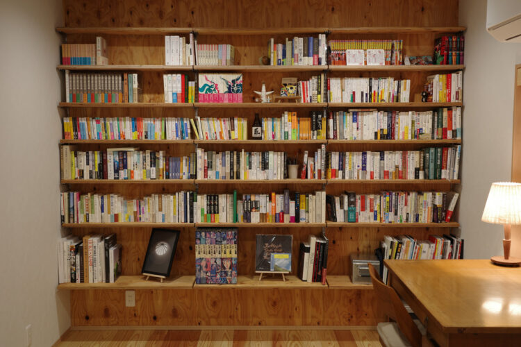 「現在、祖父母の家をリフォームして暮らしています。そのリフォームの際に以前から憧れていた『図書室』を作ることに。大工さんと打ち合わせして作ってもらった憧れの本棚を、太陽の塔に見守ってもらっています」(@125.7_k)