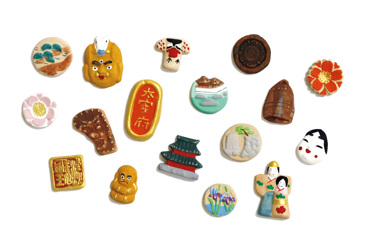 福岡県では焼き物のおはじき作りが盛んです。博多人形師の手によって丁寧に仕上げられる伝統工芸品で、季節の風物詩などの多彩な題材が小さな世界に凝縮されています。