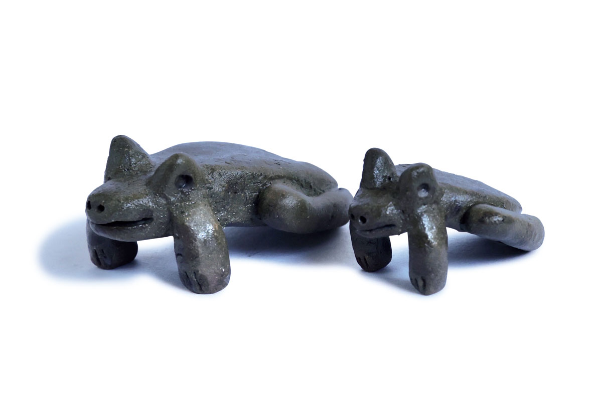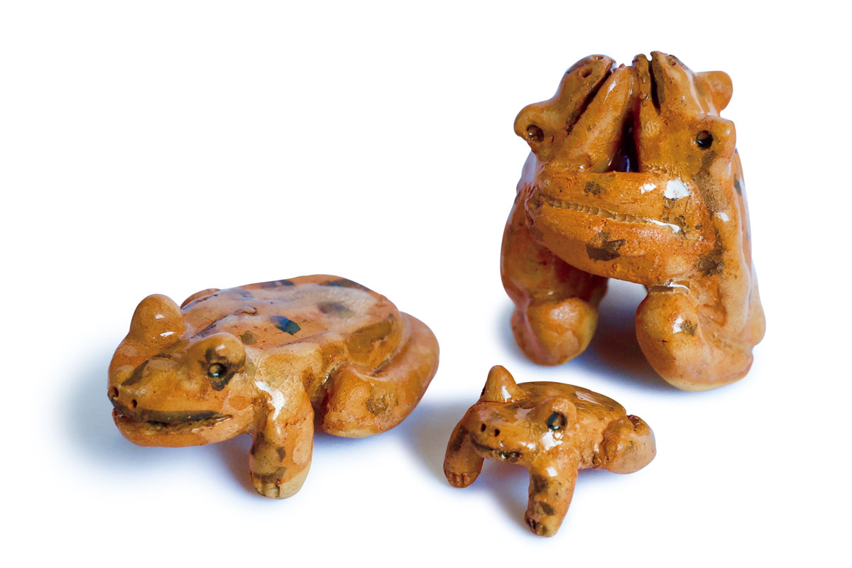 この戸部蛙は文化文政の頃、笠寺にいた瓦職人たちが瓦粘土を使って作り始めたといわれ、東海道を旅する人々の間で安全祈願の品として愛されました。