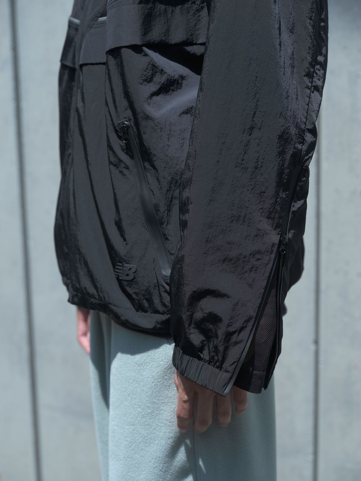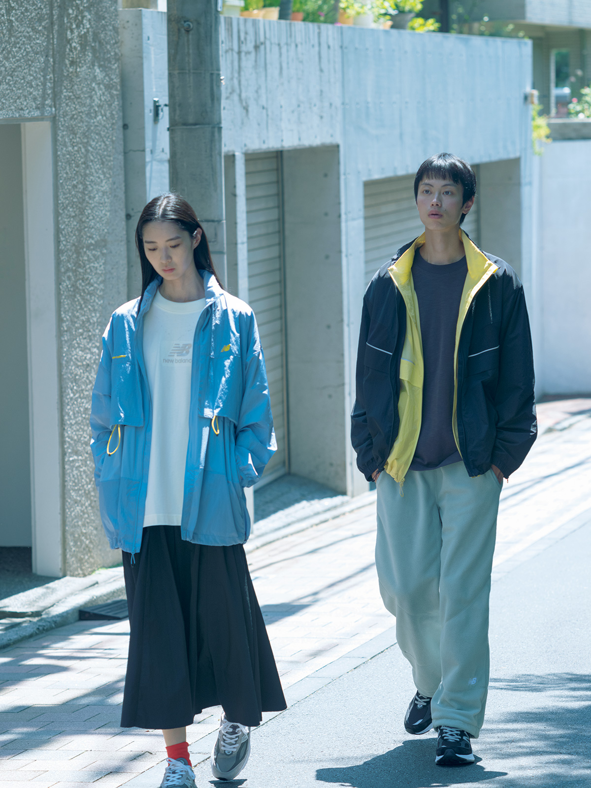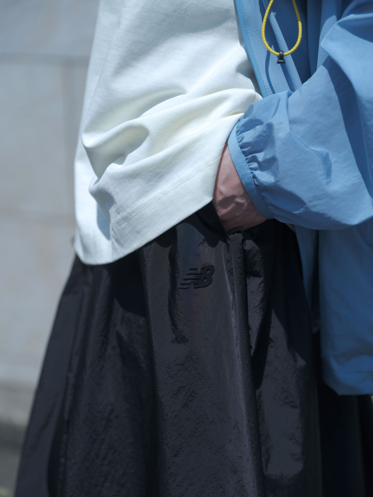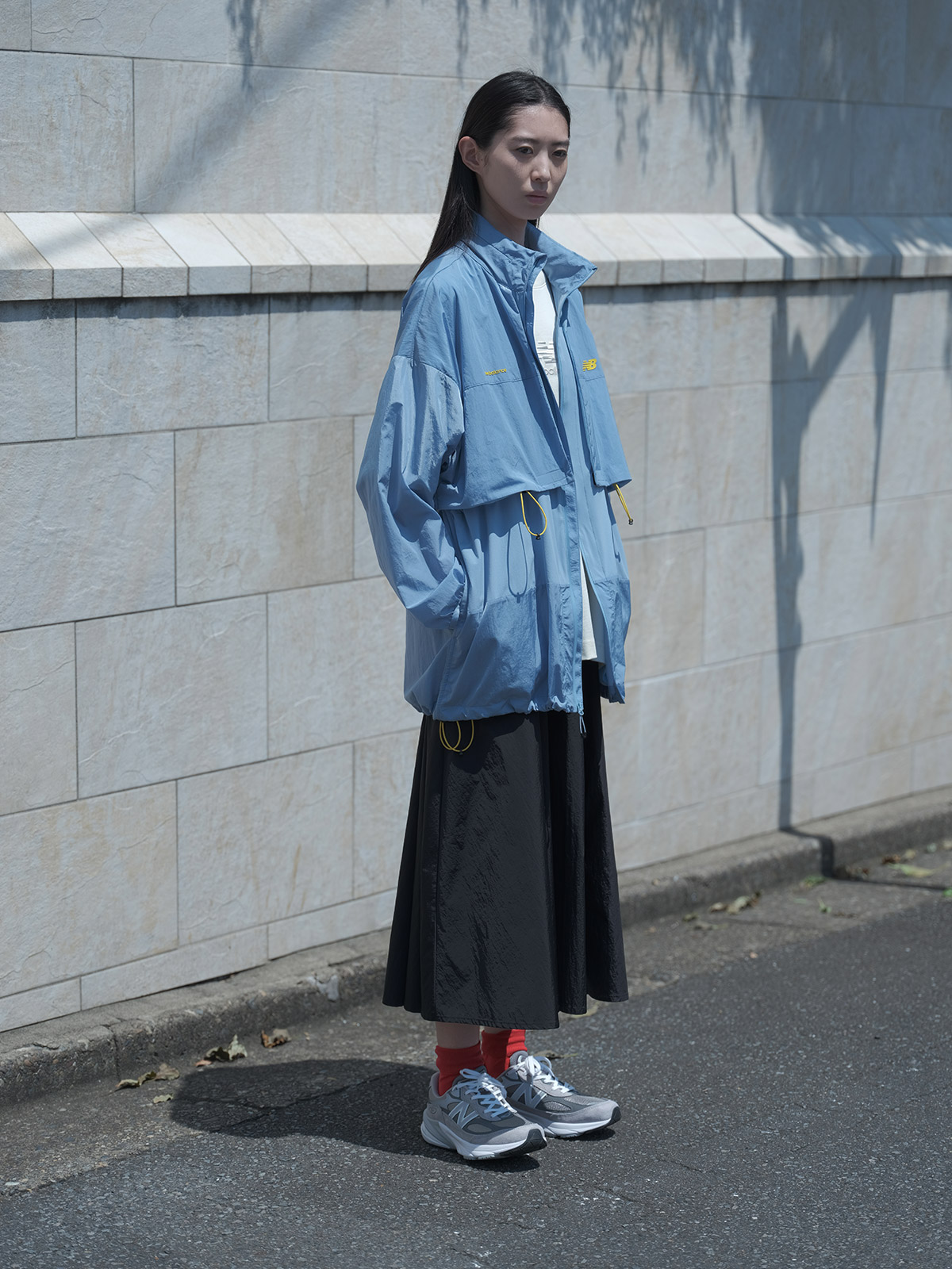 色や形が他のアイテムと組み合わせやすかったり、ドローコードを調整してシルエットを変えられたり。“Adjustability=適応性”をキーワードに掲げ、多様な着こなしができる余白の大きさも〈NB GREY〉の特徴のひとつ。スタイリングを手がけた池田尚輝さんは、どのようにコーディネートを組んでいったのか。〈NB GREY〉デザイナーの大庭里香さん、桑原啓さんからのアイテムの解説に耳を傾けつつ、着こなしを考えるプロセスに密着した。