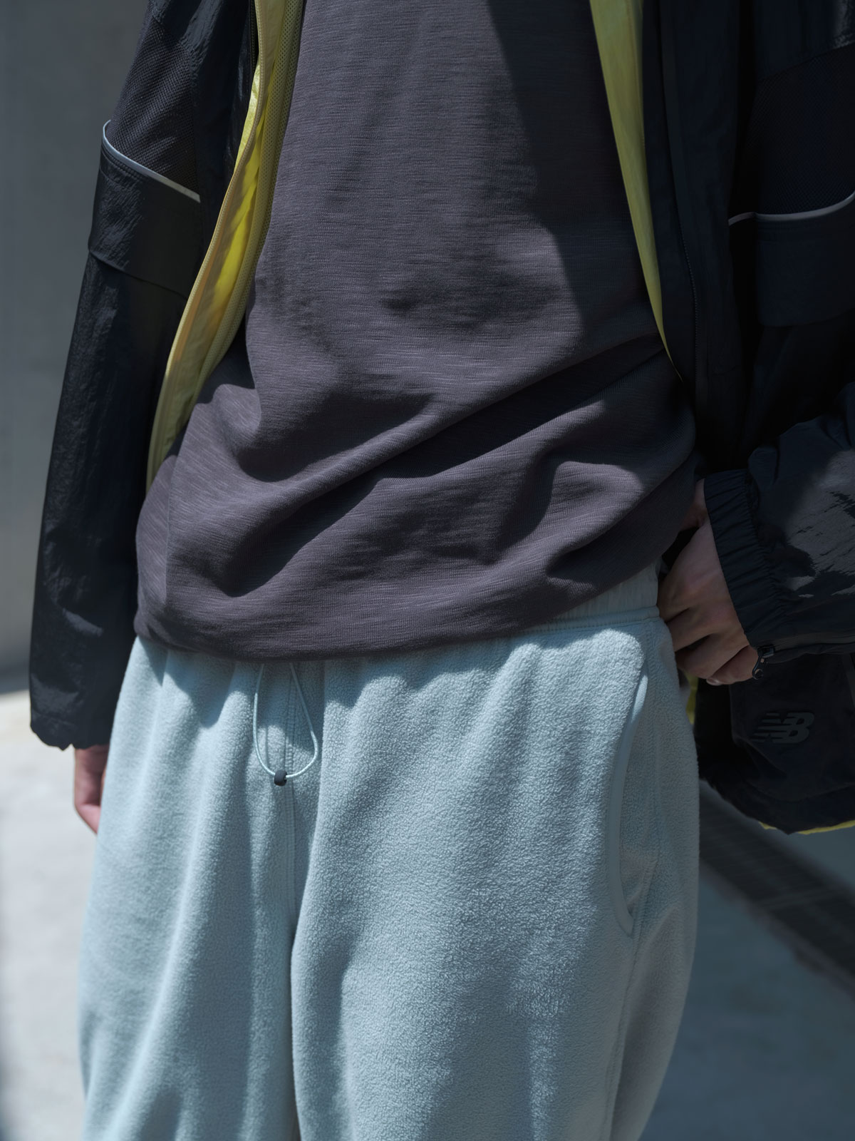 面白いアイデアですよね。パンツにフリースワイドパンツを合わせたのはどうしてですか?