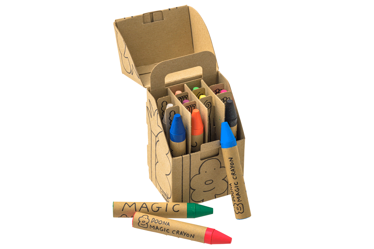 可愛らしいクラフトボックスにおさまったクレヨン12本セット。紙はもちろん、ガラスやタイル、金属など、さまざまな素材に書ける顔料を使用。水に溶かせば、水彩画のような風合いで描くこともできる。さらに、濡れた布で簡単に落とせるため、子どもの落書きにも安心。また、ショーウィンドーを使った店舗のポップ作りなど、さまざまなシーンで活躍する。