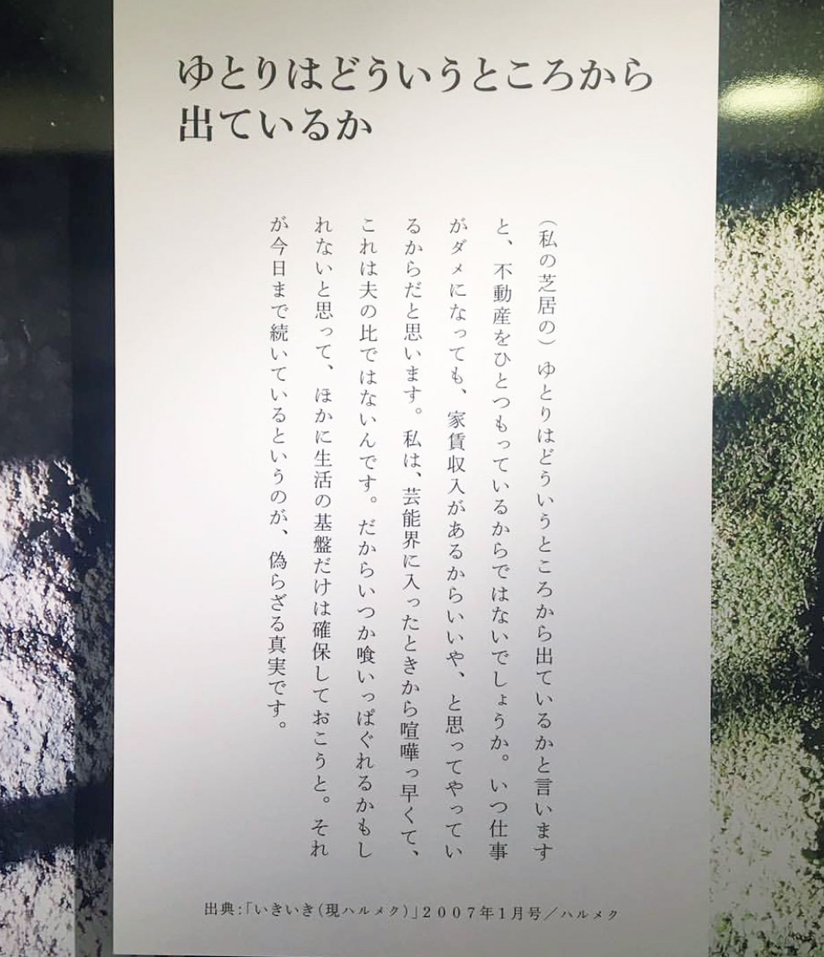 尊敬する樹木希林さんが逝去された翌年の2019年、彼女の人生や仕事を回顧する展覧会が開催されたんです。そこで、「私の芝居にゆとりがあるのは不動産を持っているからです」という生前の言葉が紹介されていて。