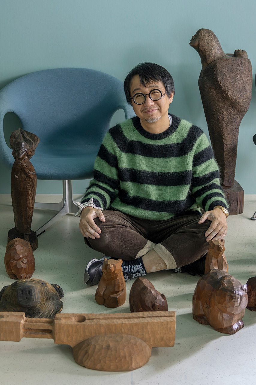 「木彫り熊生誕100周年を迎えた2024年に、伊勢丹新宿店本館5階にて『熊は100歳100祭』という大きな展示販売会を開催しました。これがひとつのきっかけになります。昨年、伊勢丹の方から今度は一階でやってみないかとお話をいただいたんです。当初は木彫り熊でという話だったんですが、ちょうど自分が50歳という節目の年だってこともあり、どうせやるならコレクターとして、編集者として、さらにはギャラリストとして自分が関わってきた全てを盛り込みたいなと。
