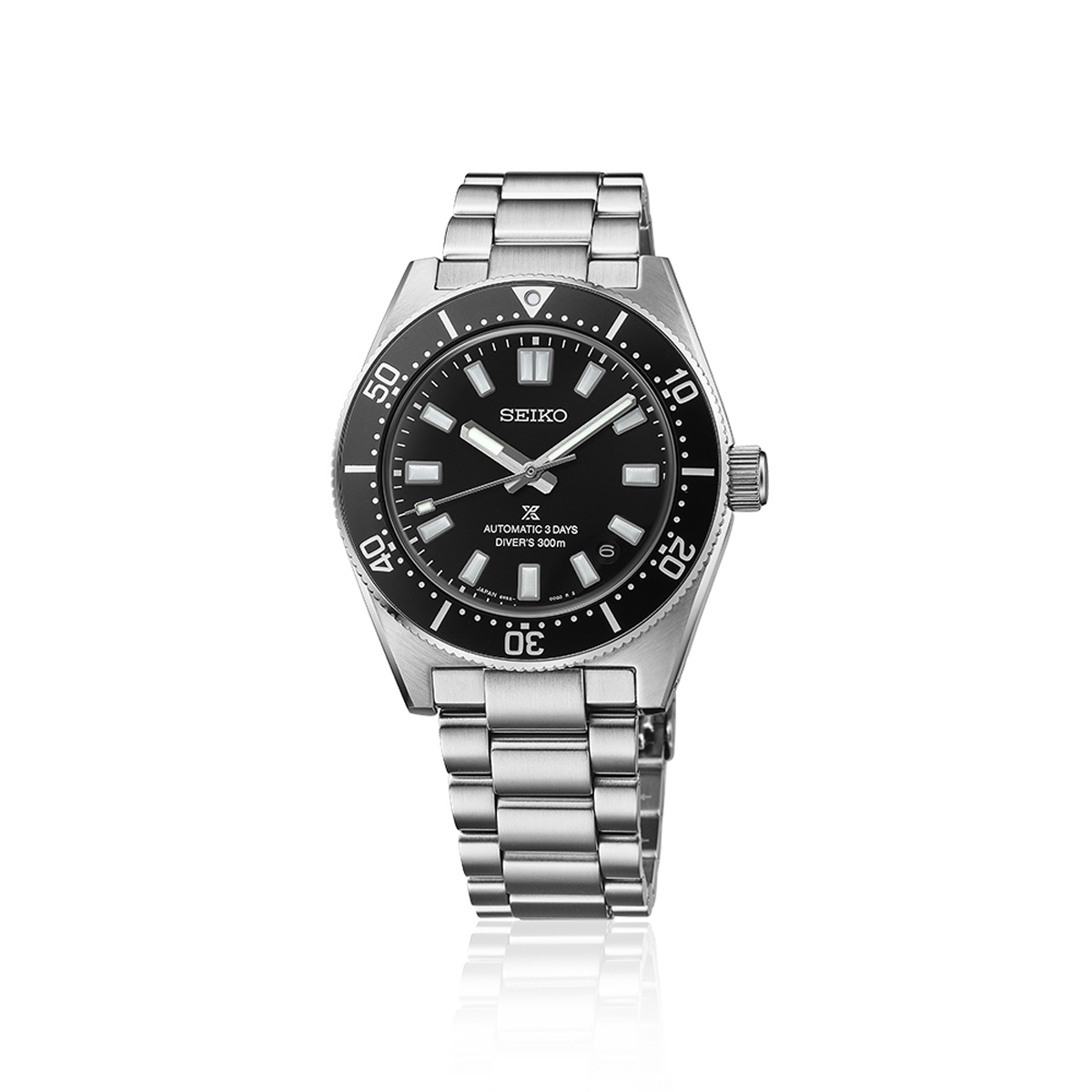 別名「1965 ダイバー」。そのデザインは、1965年に誕生した国産初のダイバーズウォッチからインスピレーションを得ている。そのままズバリの復刻とせず、針先を尖らせ、インデックスもケース径に合わせて視認性を向上。さらに逆回転防止ベゼルを拡幅して操作性を改良した。
