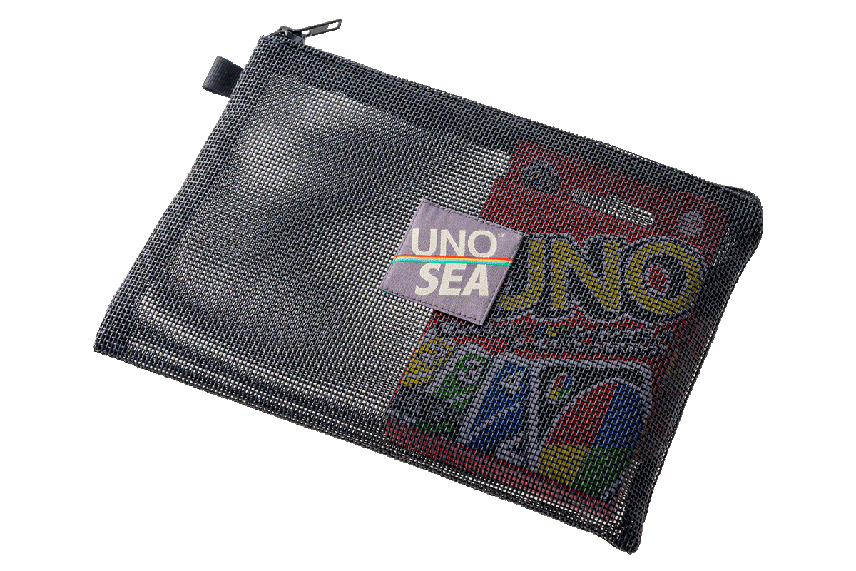 新しくタッグを組んだのは、言わずとしれた《UNO》。アメリカのオハイオ州で生まれたこのカードゲームだ。1980〜90年代、限られた環境のなかで自分たちのスタイルを築いていったストリートカルチャーの一部として親しまれていた。そんな“仲間とゲームを楽しむ空気感”に焦点を当て、出来上がったのは、UNO専用のメッシュポーチ。“UNO”の名前の入った織りネーム付きでボードゲーム好きの心をくすぐる。