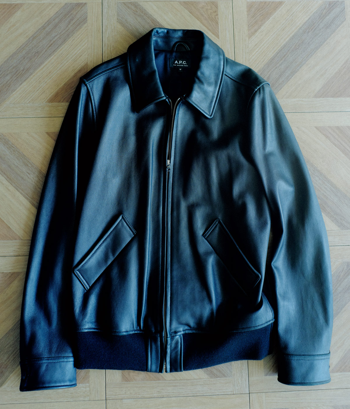 滑らかなシープスキンのモトブルゾン(ライダース)はクラシカルなデザインがブランドらしい。ジャストフィットのストレートシルエットで袖口はカフスボタン仕様。袖ぐりの下にベンチレーションのメタルアイレットが施されている。長く愛用したい一着。