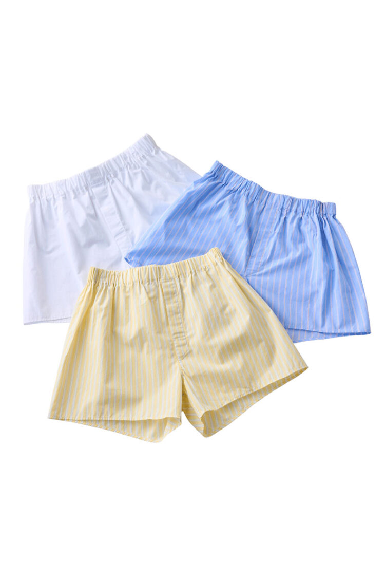 トランクス 無地ホワイト 6,050円、ブルーストライプ 6,600円、イエローストライプ 6,600円