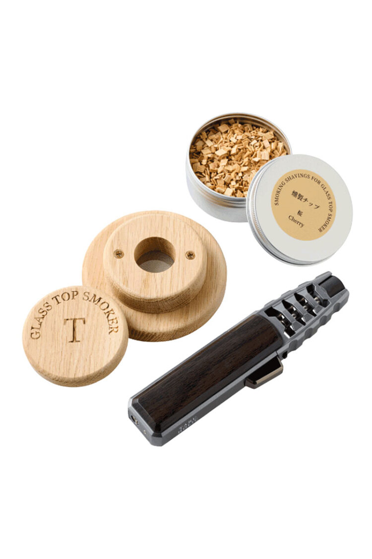 グラストップスモーカー(本体+桜チップ)*本体サイズ 直径下部φ10.5cm 8,200円、プレミアムトーチ 3,200円