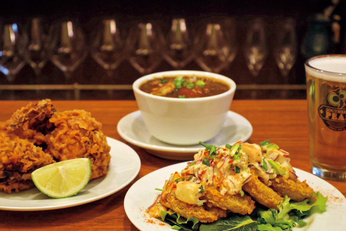 ・ガンボ、フライドチキン、フライドグリーントマトと海老のレムラーダ!