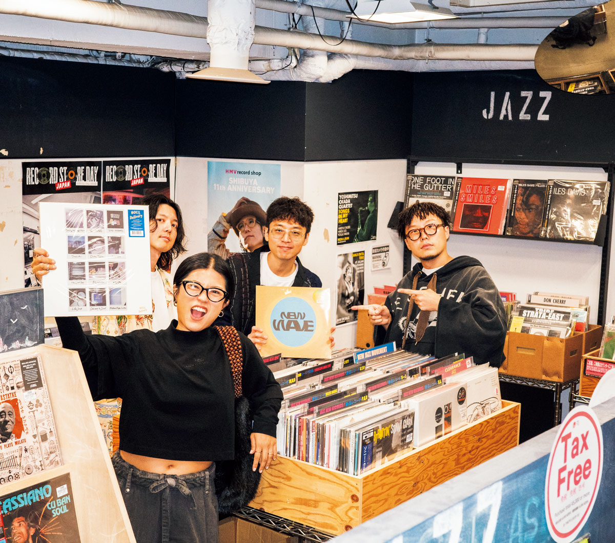───最初は〈HMV record shop 渋谷〉。4人揃って、取材1時間前からレコードディグを開始していたという。