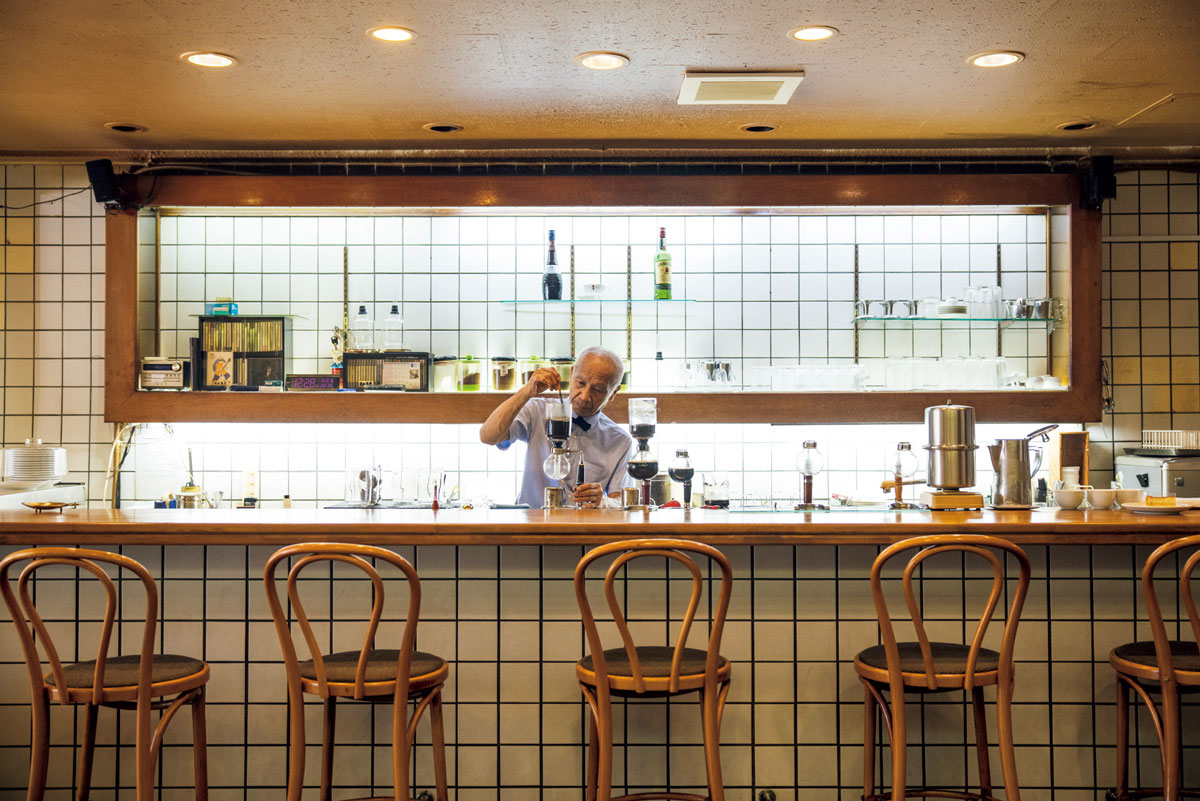 コーヒーといえば、サイフォン式。カウンターでは蝶ネクタイをしたマスターが、黙々とサイフォンを操り、琥珀色の液体が上へ、下へ。ホールには、新聞片手にいつものブレンドで一服する常連らしき客の姿。そんな70~80年代に主流だった喫茶店の景色がある。