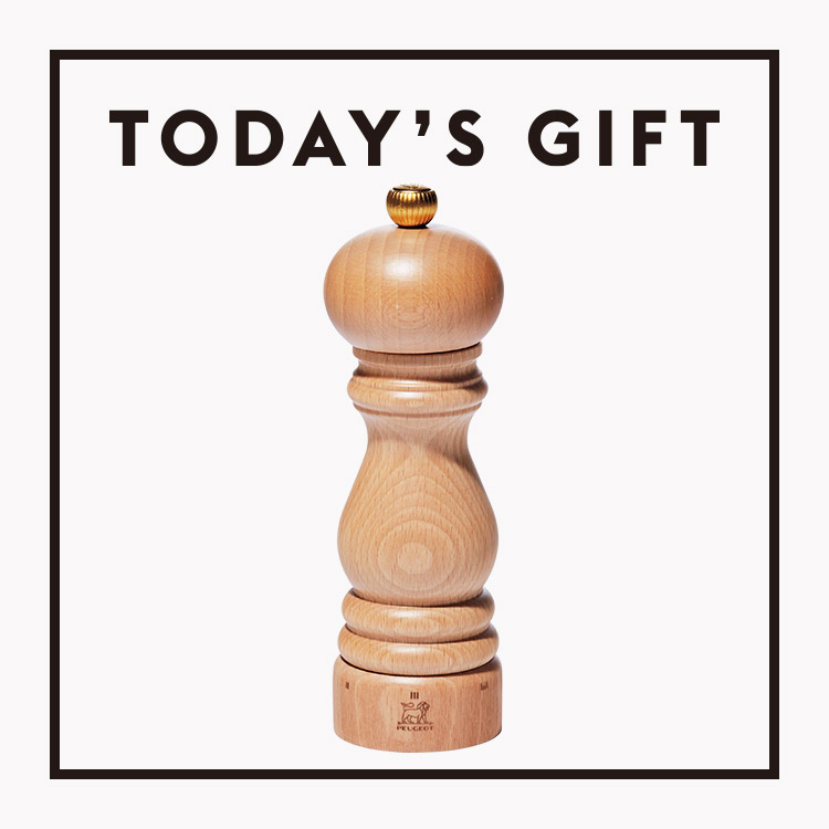 Cook 料理する 2021.10.14 Cook 料理する 2021.10.14 今日のギフト:〈プジョー〉のペッパーミル あの人の笑顔が見たい。お世話になっている友達や家族、恋人に贈りたい、ちょっと楽しいプレゼントを毎日紹介。前回の「〈すぱいす〉の極上牡蠣カリー」も読む。 Photo: Masanori Kaneshita / Text: Hisashi Ikai / Edit: Wakako Miyake / Select: Shinichiro Harakawa 連載一覧へ 料理上手のあの人へ尊敬できる、キッチン道具 〈プジョー〉のペッパーミル 粗く挽いても、細かく挽いても粒が均一なのが、プジョーの木製ミルの特色。サイズがさまざまに揃い、プロの料理人にも愛用者が多い。《パリ ユーセレクト》18㎝ ¥6,000 コーンズTEL:03-5730-1609 連載一覧へ RELATED ARTICLES 関連記事 前の記事へ 今日のギフト:〈すぱいす〉の極上かきカリー Eat 2021.10.13 TAG #今日のギフト #料理 SHARE ON URL Copied! No.1045 理想の本棚。 12月15日発売 890円 最新号をチェック FEATURED MOVIES おすすめ動画 【アイドルって?】〈Juice=Juice〉の「THE FIRST TAKE」ができるまで。 2025.12.08 【12/1発売】アイドルって? 2025.12.08 BRUTUSOFFICIAL SNS ブルータス公式SNS