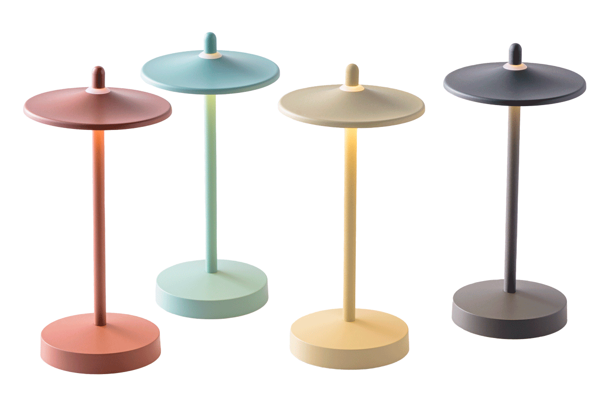 やわらかな光を放つポータブルライトは、小さな傘をイメージした形状。上部のでっぱりに触れれば点灯し、長押しで好みの明るさに調光も可能。USB type-Cで充電すれば持ち運べるから、リビングやベッドサイドの間接照明としてもぴったり。焼き物の土色「テラコッタ」、セージの葉のような「セージグリーン」、砂浜みたいな「サンドベージュ」、深みのある「スレートグレー」の4色展開。