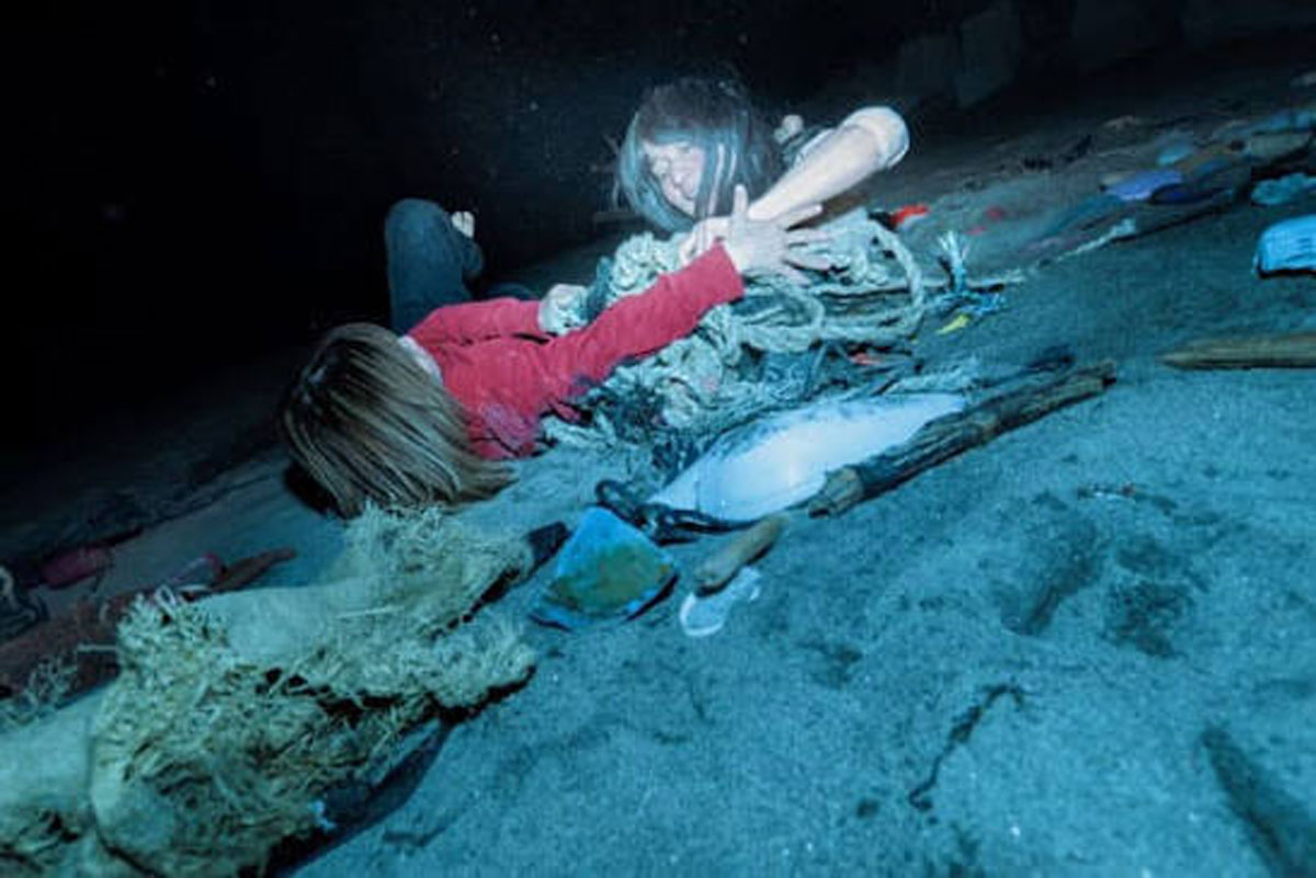 会場全体を覆い尽くす巨大なターポリン・プリントによる志賀理江子の展示の鬼気迫る迫力。志賀による21世紀の民話であり神話。日本の、世界の写真史に残るインパクト。1:「ジャム・セッション 石橋財団コレクション×山城知佳子×志賀理江子 漂着」@アーティゾン美術館